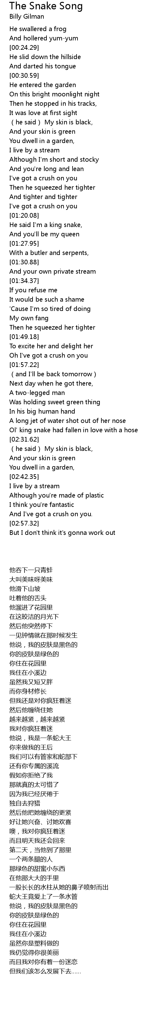 | [02:22.25] | Ol' king snake had fallen in love with a hose |