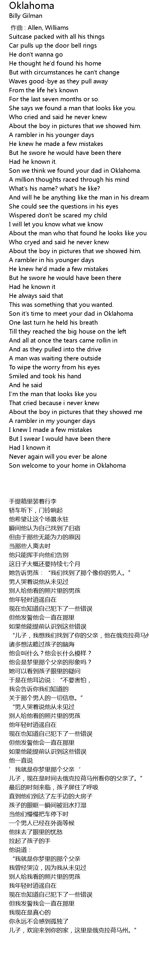 | [02:24.400] | Son it' s time to meet your dad in Oklahoma |