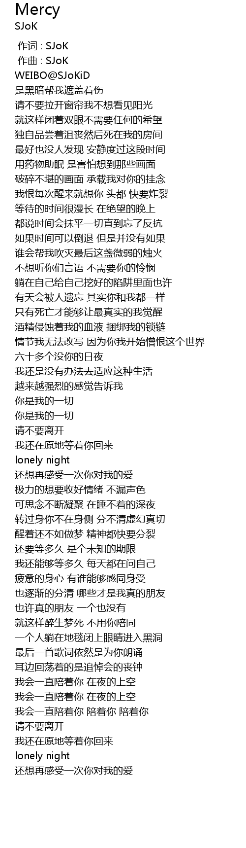 | [00:02.651] | 请不要拉开窗帘我不想看见阳光 |