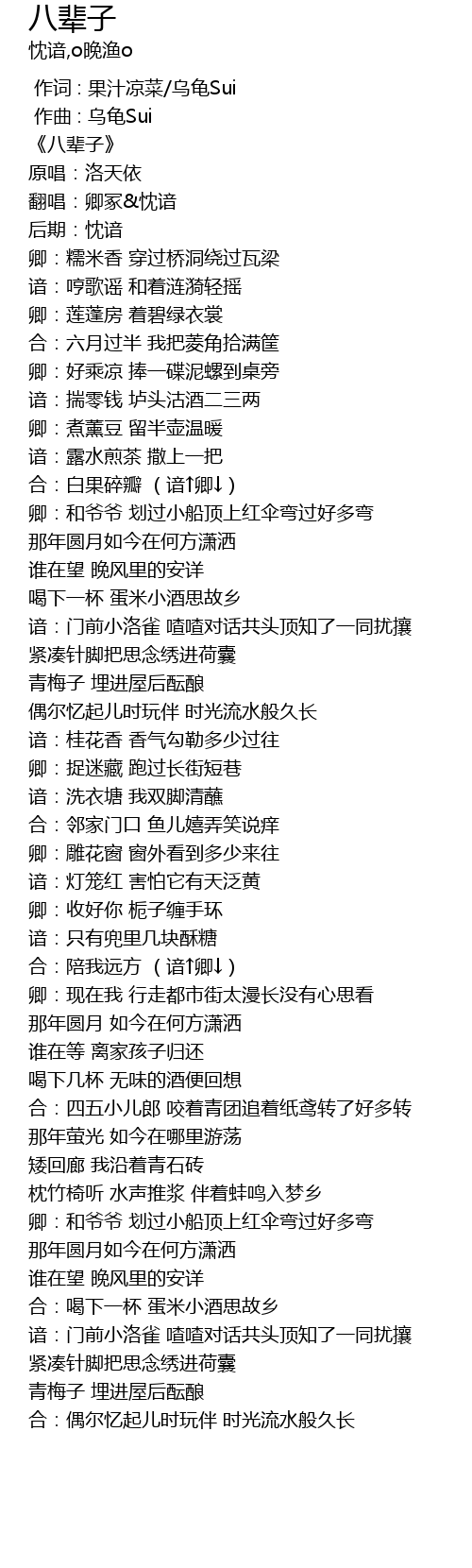 | [00:00.000] | 作词 : 果汁凉菜/乌龟Sui |