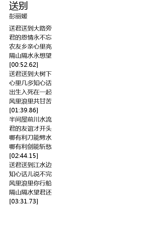 | [02:56.56] | sòng jūn sòng dào jiāng shuǐ biān |