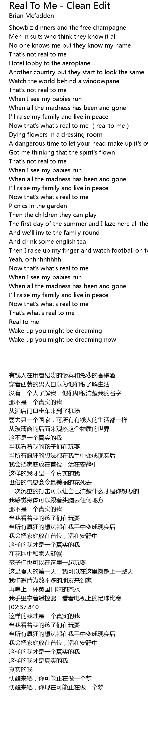 | [02:54.350] | Now that' s what' s real to me |