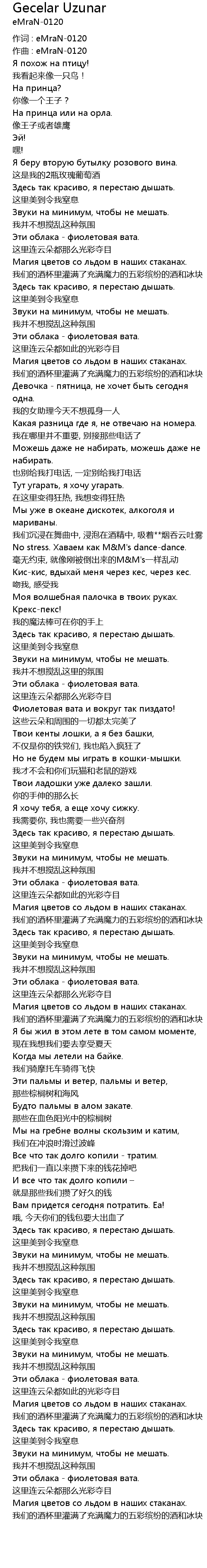 | 作词 : eMraN-0120 | |