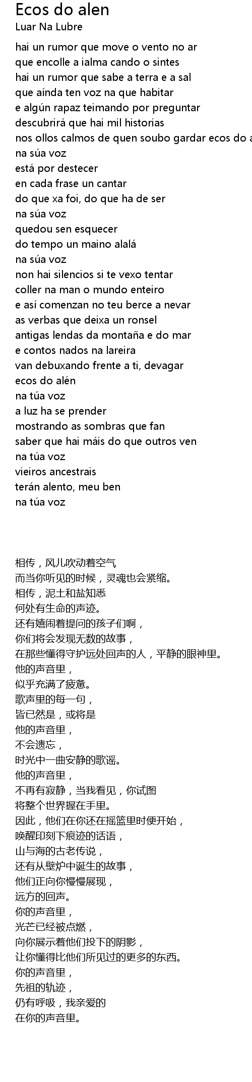 | [00:56.83] | nos ollos calmos de quen soubo gardar ecos do ale n |