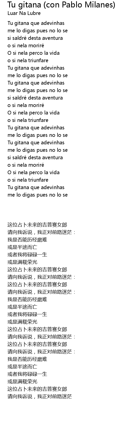 | [00:37] | Tu gitana que adevinhas |