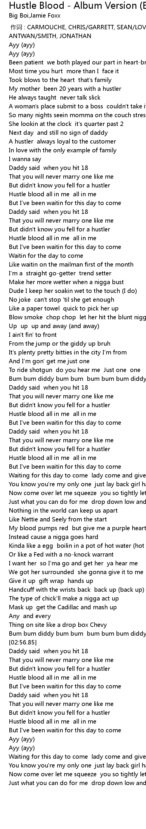 | [03:06.34] | Hustle blood all in me all in me |