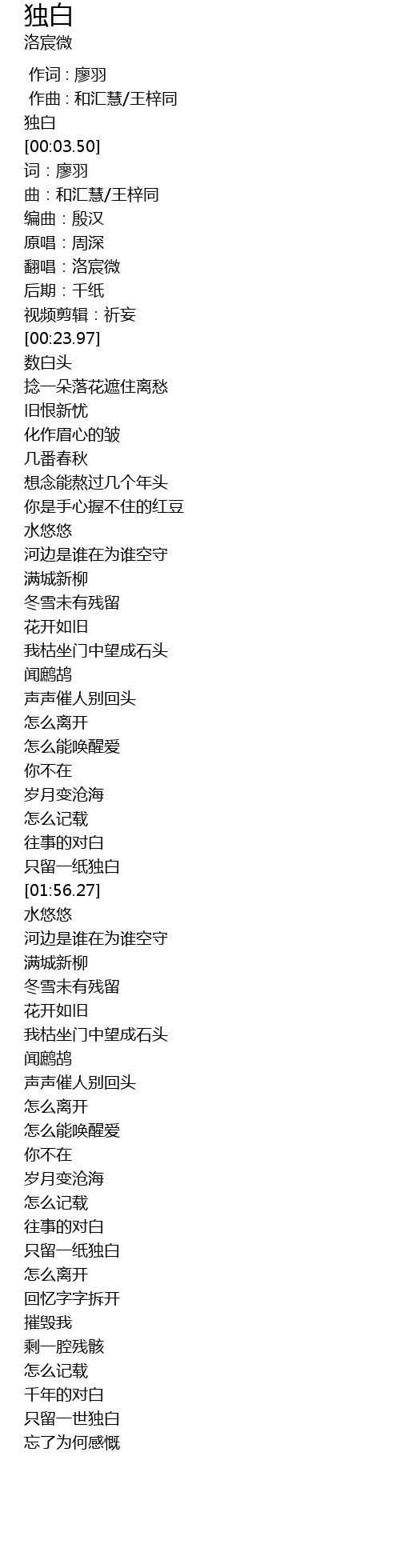 | [03:20.55] | 只留一世独白 |