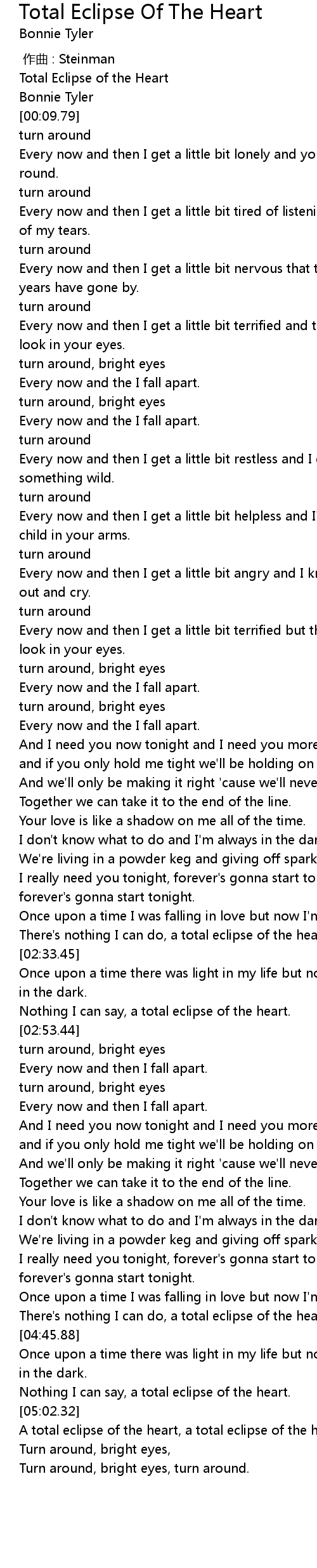 | [05:05.50] | A total eclipse of the heart, a total eclipse of the heart. |