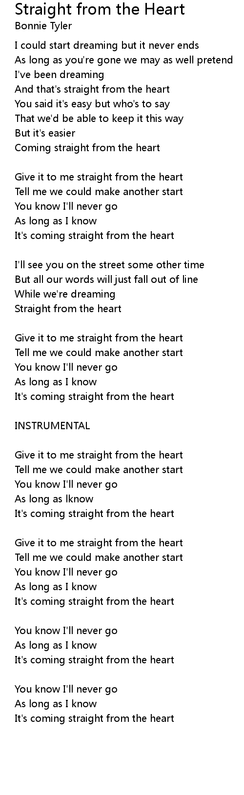 Give it to me straight from the heart |