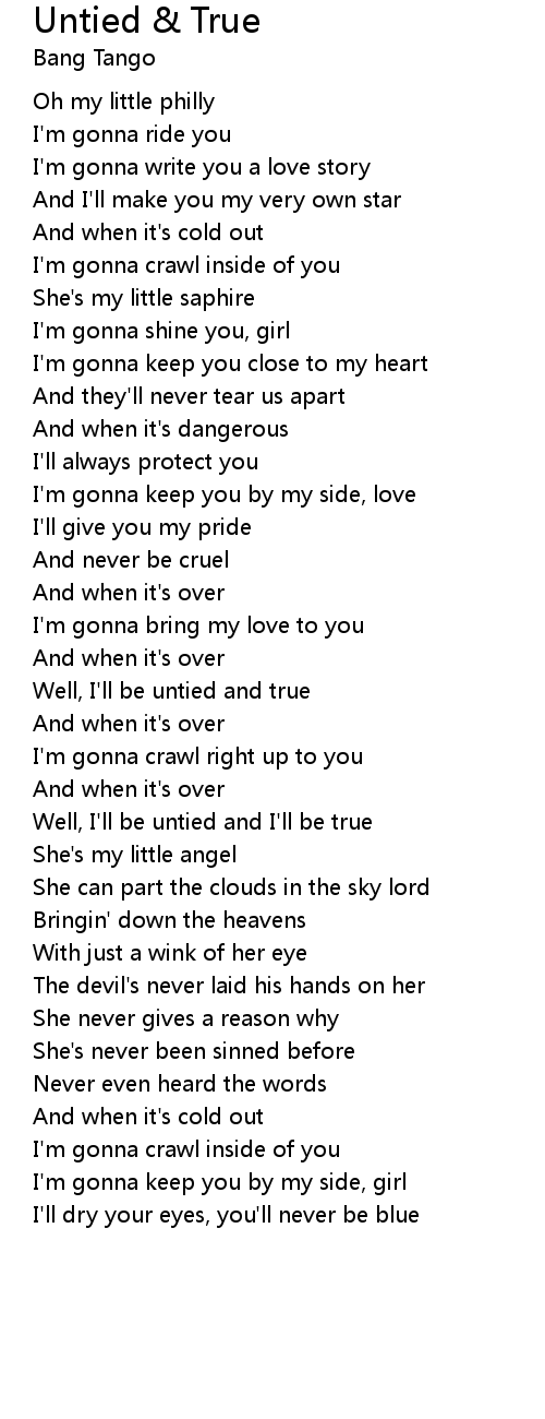 Well, I'll be untied and true |