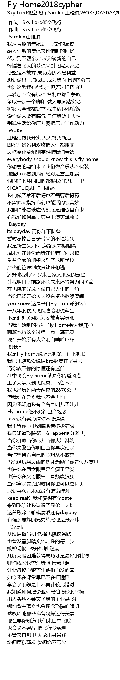 | [02:01.15] | 一八年的秋天飞院嘻哈思想萌生 |