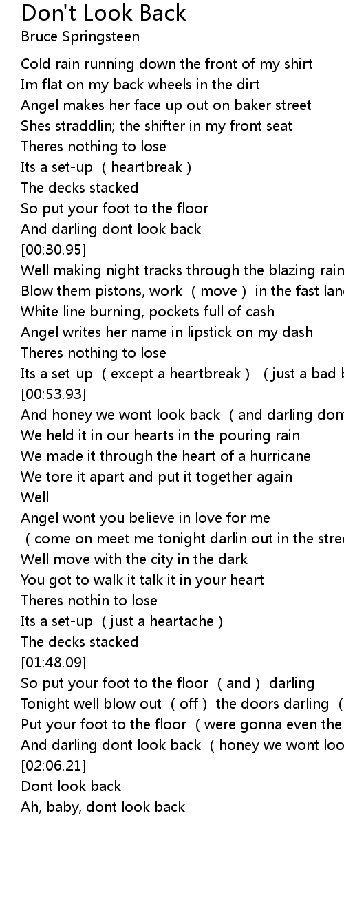 | [02:02.40] | And darling dont look back (honey we wont look back) |