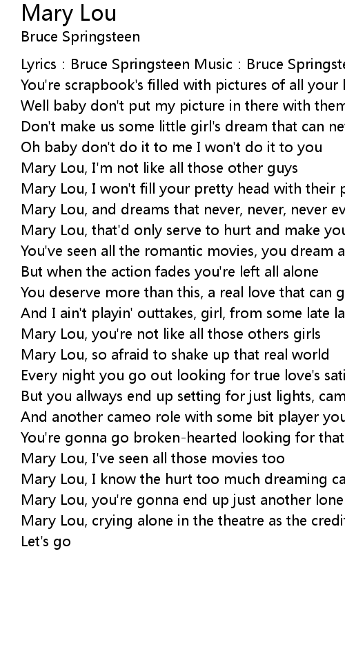 | Mary Lou, I won' t fill your pretty head with their pretty lies | |