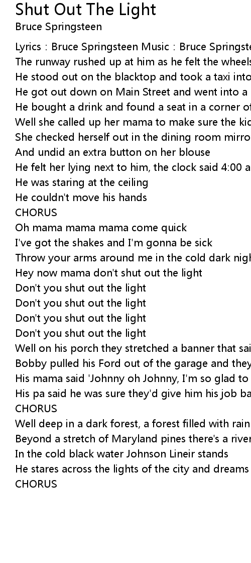 | Hey now mama don' t shut out the light | |