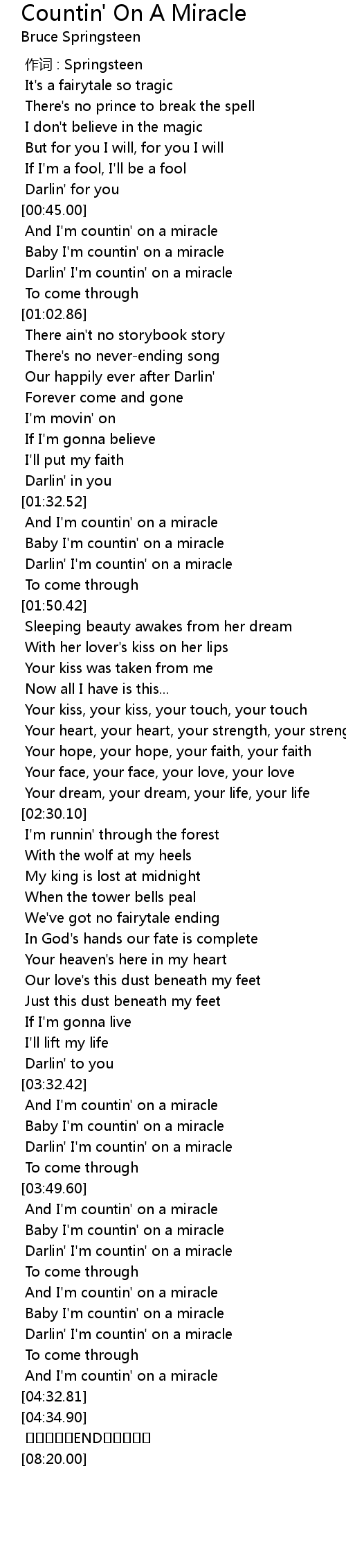 | [04:16.87] | Darlin' I' m countin' on a miracle |