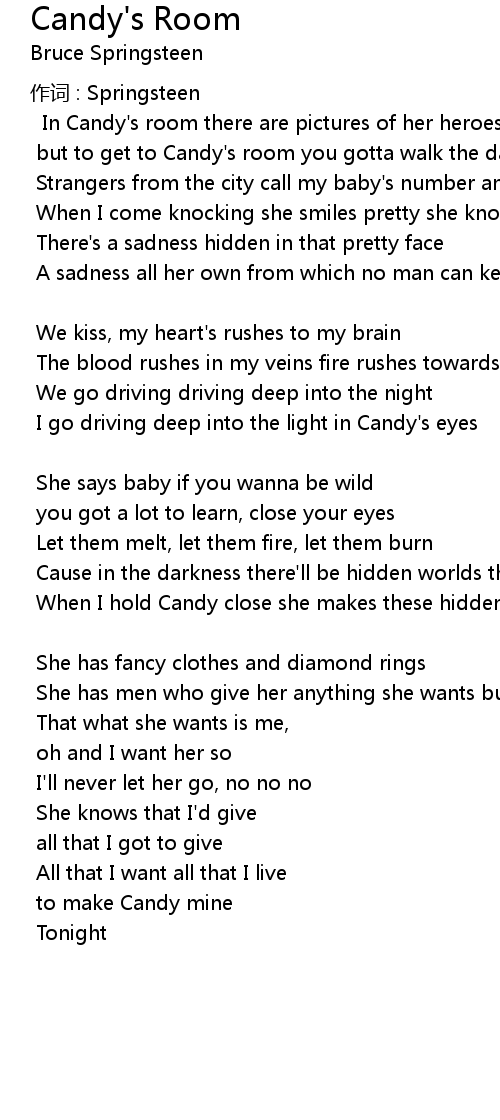 | When I come knocking she smiles pretty she knows I wanna be Candy' s boy | |