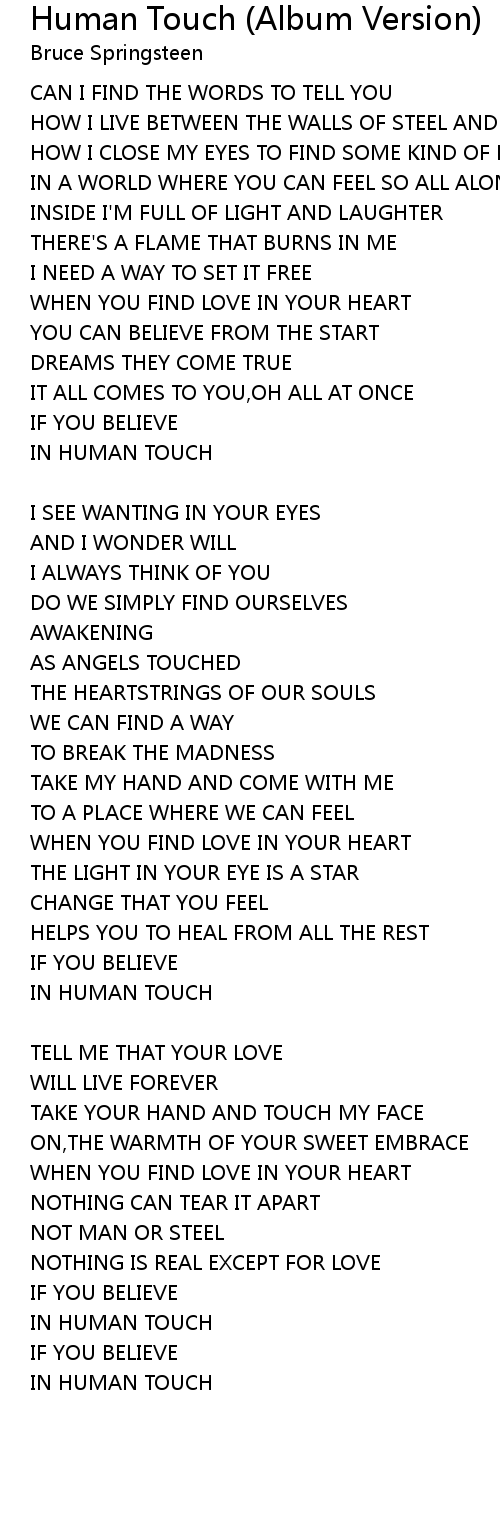 TAKE YOUR HAND AND TOUCH MY FACE |