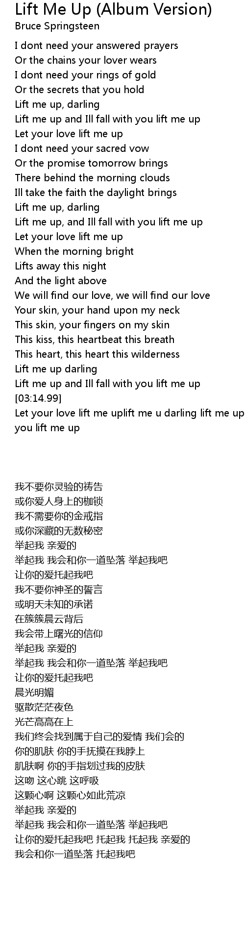 Let your love lift me uplift me u darling lift me up and ill fall with you lift me up |