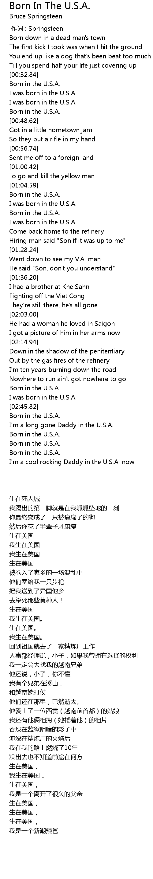 | [02:41.88] | I was born in the U. S. A. |