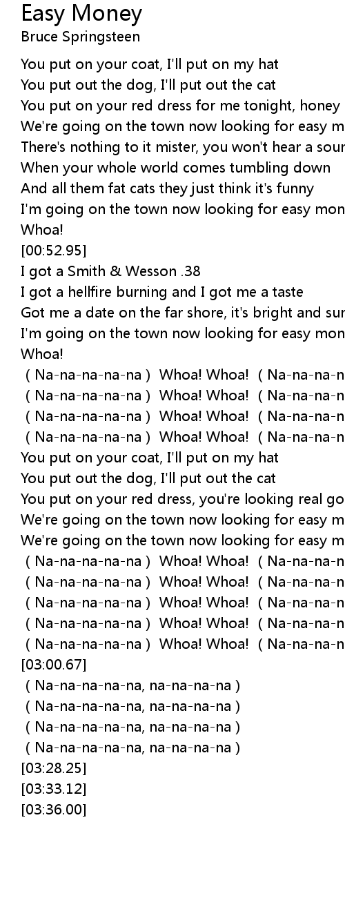 | [00:45.27] | I'm going on the town now looking for easy money |