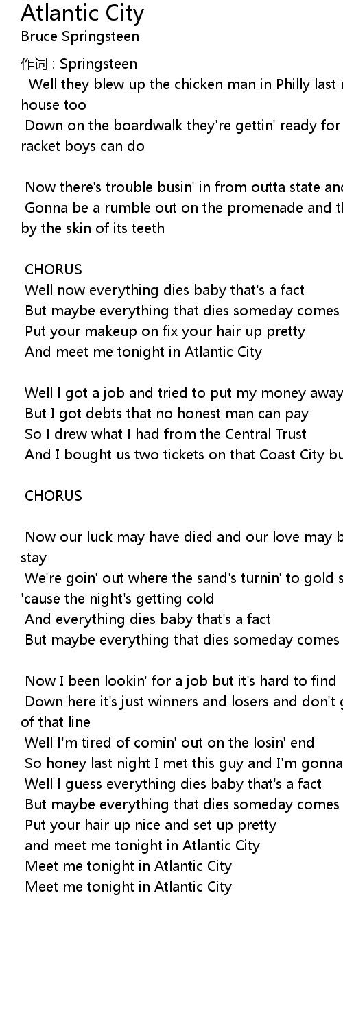 | We' re goin' out where the sand' s turnin' to gold so put on your stockin' s baby ' cause the night' s getting cold | |