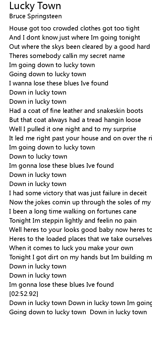 Down in lucky town Down in lucky town Im going down to lucky town Going down to lucky town Down in lucky town |