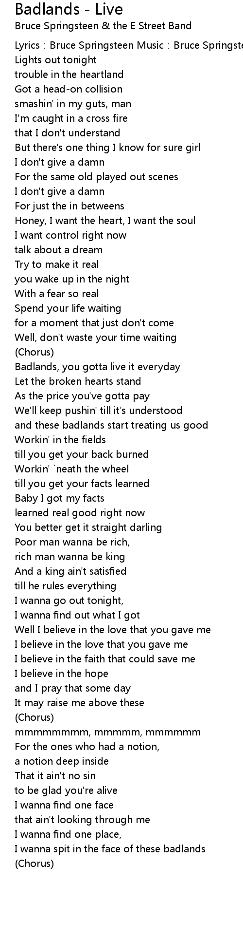 | Lyrics: Bruce Springsteen Music: Bruce Springsteen | |