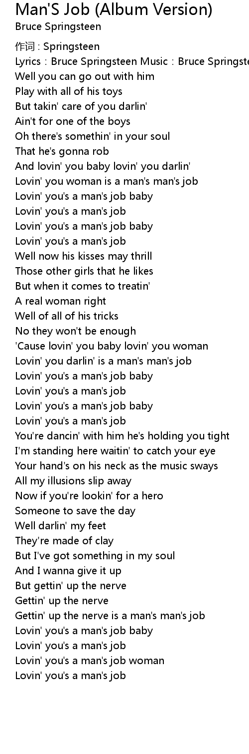 | Lovin' you darlin' is a man' s man' s job | |