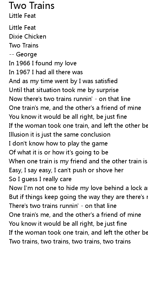 Two trains, two trains, two trains, two trains |