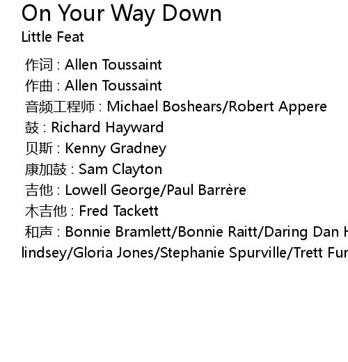 | [00:00.000] | 吉他 : Lowell George/Paul Barrère |