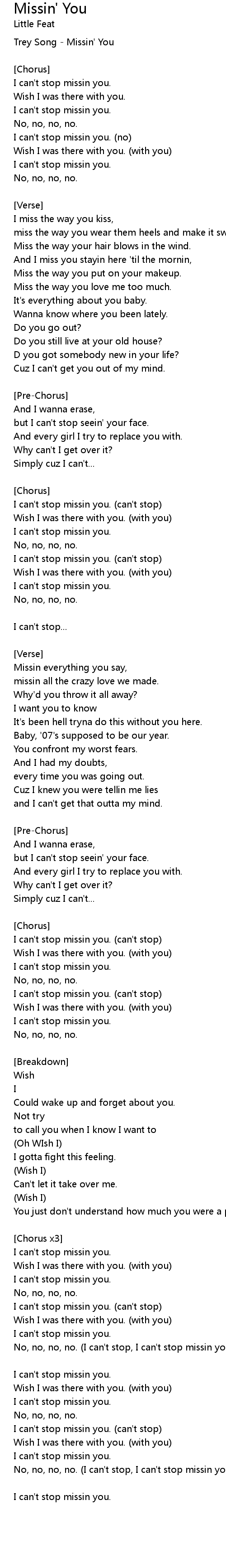 No, no, no, no. (I can't stop, I can't stop missin you). |
