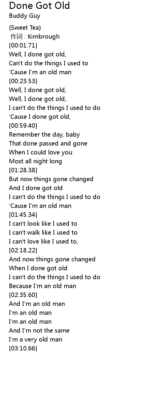 | [01:33.22] | And I done got old |