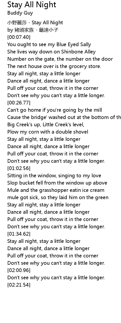 | [00:00.00] | xiǎo yě lì shā Stay All Night |