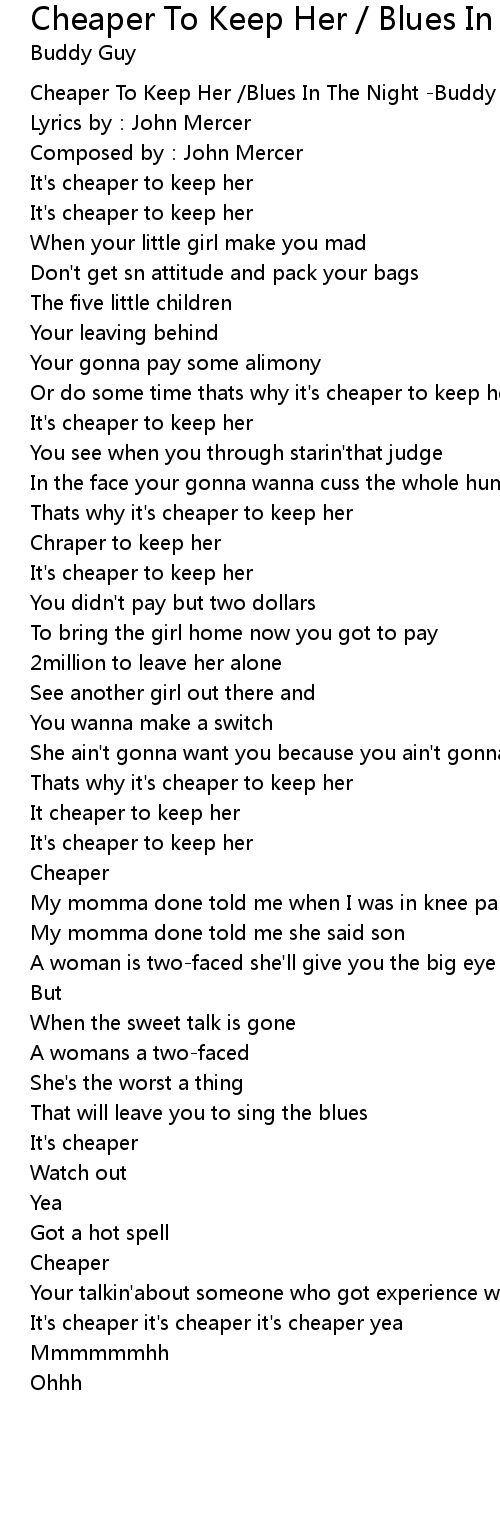 | [00:00.00] | Cheaper To Keep Her /Blues In The Night -Buddy Guy |