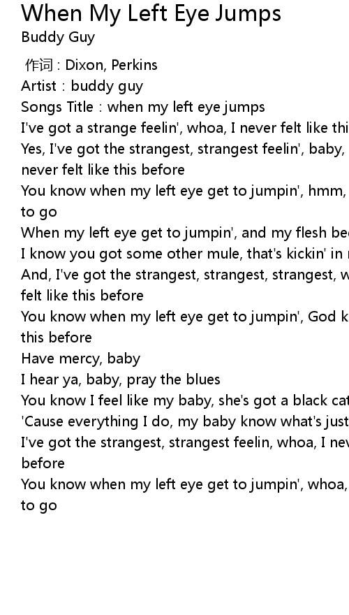| [00:48.46] | You know when my left eye get to jumpin', hmm, I don' t know which way to go |