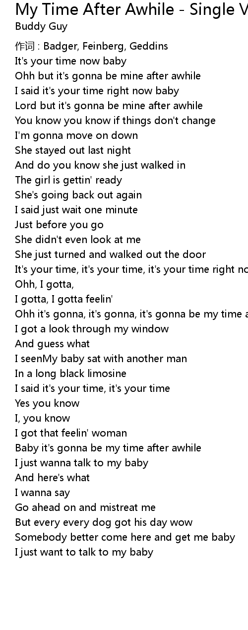 | Ohh it' s gonna, it' s gonna, it' s gonna be my time after awhile | |
