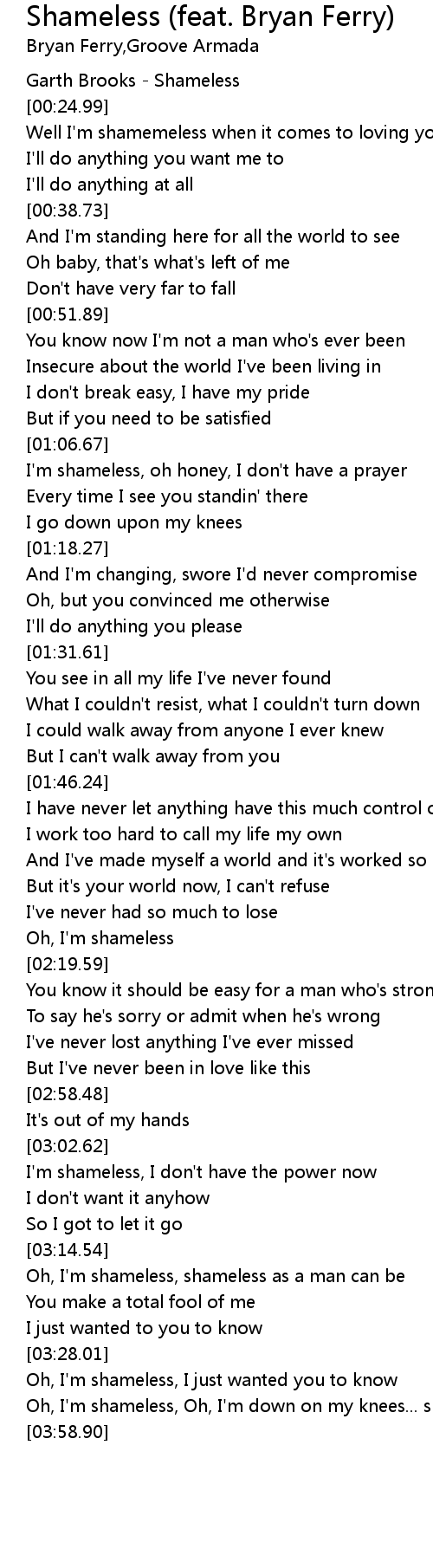 Oh, I'm shameless, Oh, I'm down on my knees... shameless |