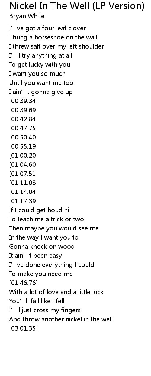 | [01:47.31][00:39.69] | I' ll throw another nickel in the well |