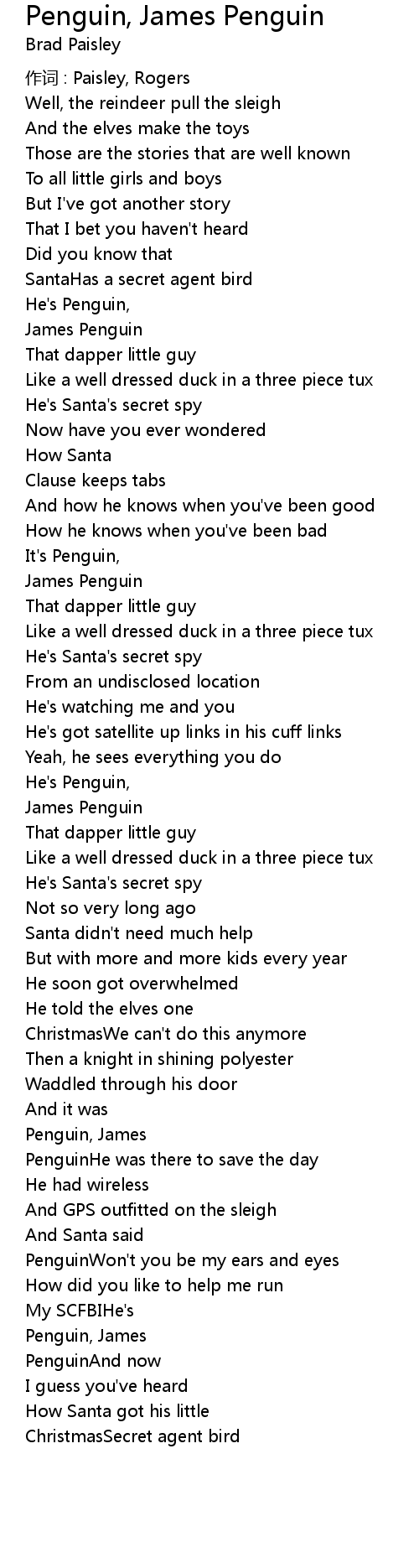 | Song | Penguin, James Penguin |
