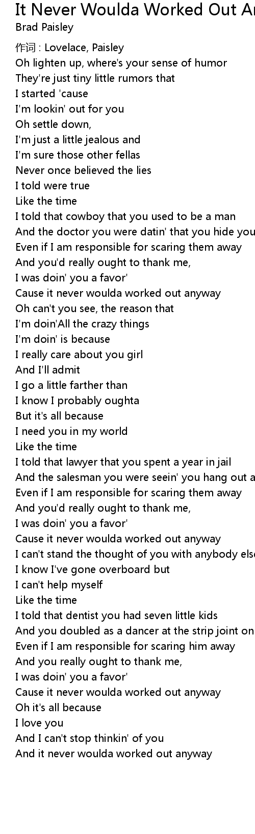 | Song | It Never Woulda Worked Out Anyway |