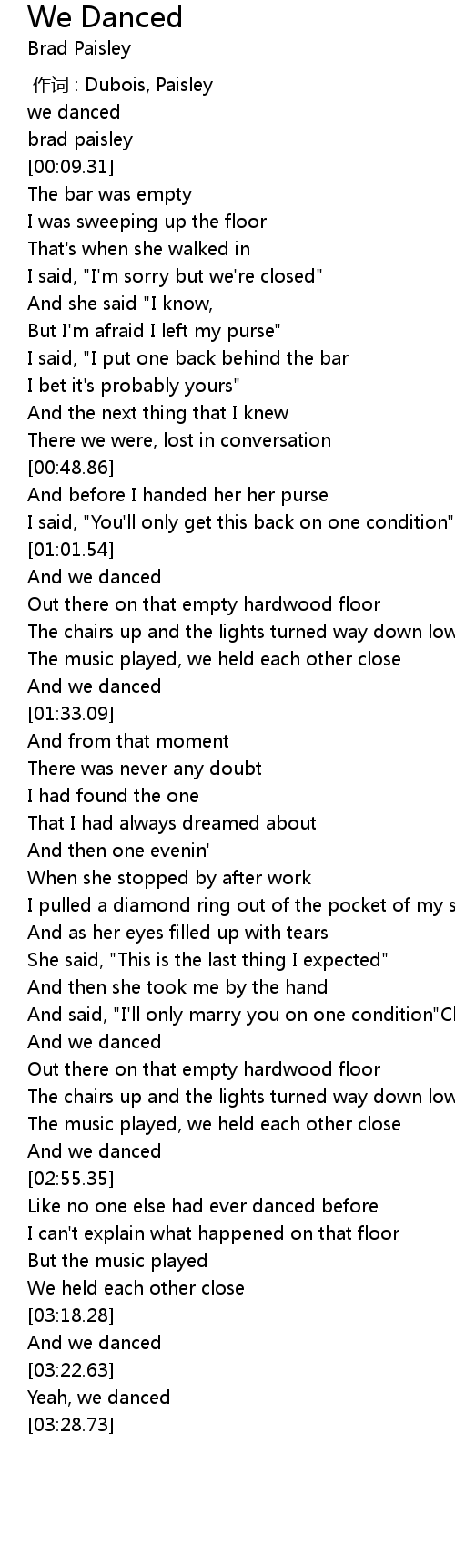 | [00:00.00] | 作词 : Dubois, Paisley |