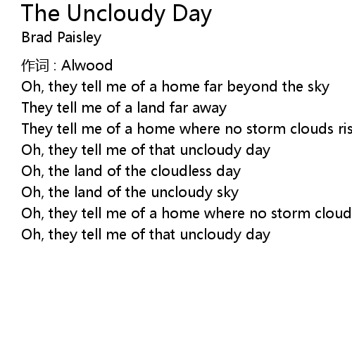 | Song | The Uncloudy Day |