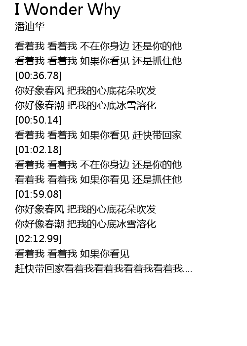 | [02:14.26] | kan zhe wo kan zhe wo ru guo ni kan jian gan kuai dai hui jia kan zhe wo kan zhe wo kan zhe wo kan zhe wo.... |