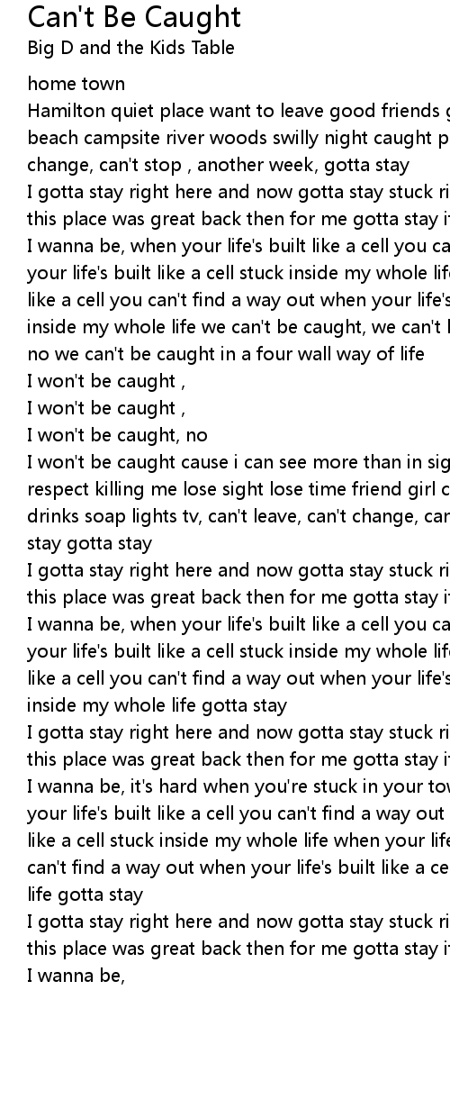 I gotta stay right here and now gotta stay stuck right in my town gotta stay this place was great back then for me gotta stay it's not exactly where |