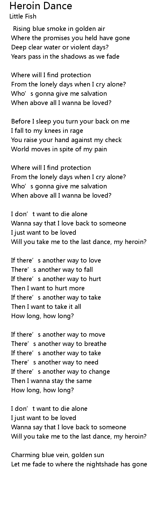 | Will you take me to the last dance, my heroin? | |