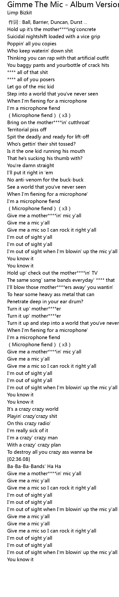 | [02:38.81] | Give me a mother****in' mic y'all |