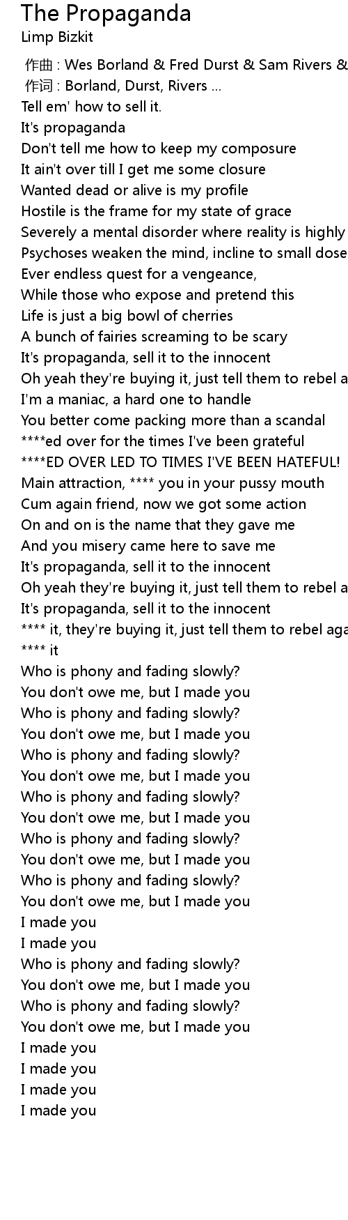 | [01:53.275] | It' s propaganda, sell it to the innocent |