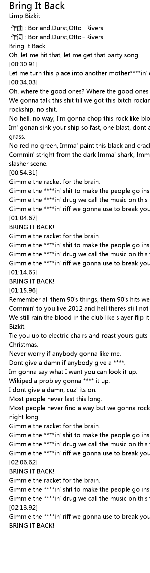 | [02:04.68] | Gimmie the ****in' riff we gonna use to break your back. |