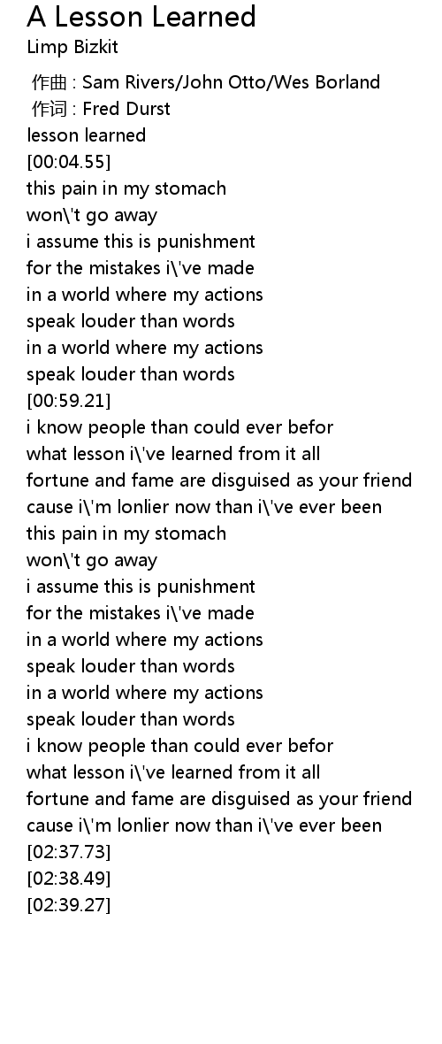 | [00:00.00] | lesson learned |