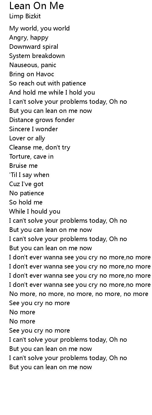 But you can lean on me now |